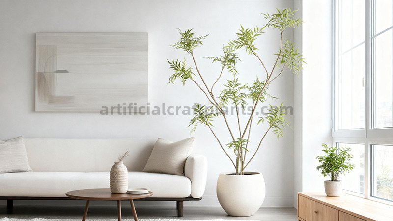Where natural light is scarce (like windowless conference rooms or basement apartments), artificial trees thrive. No more fretting about watering schedules during vacations! Discover more design solutions.
